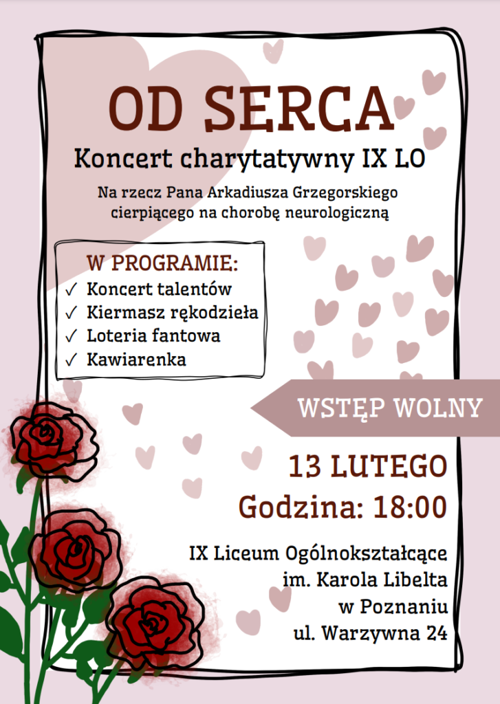 Szanowni Państwo, serdecznie zapraszamy na koncert charytatywny, który odbędzie się 13 lutego (czwartek)