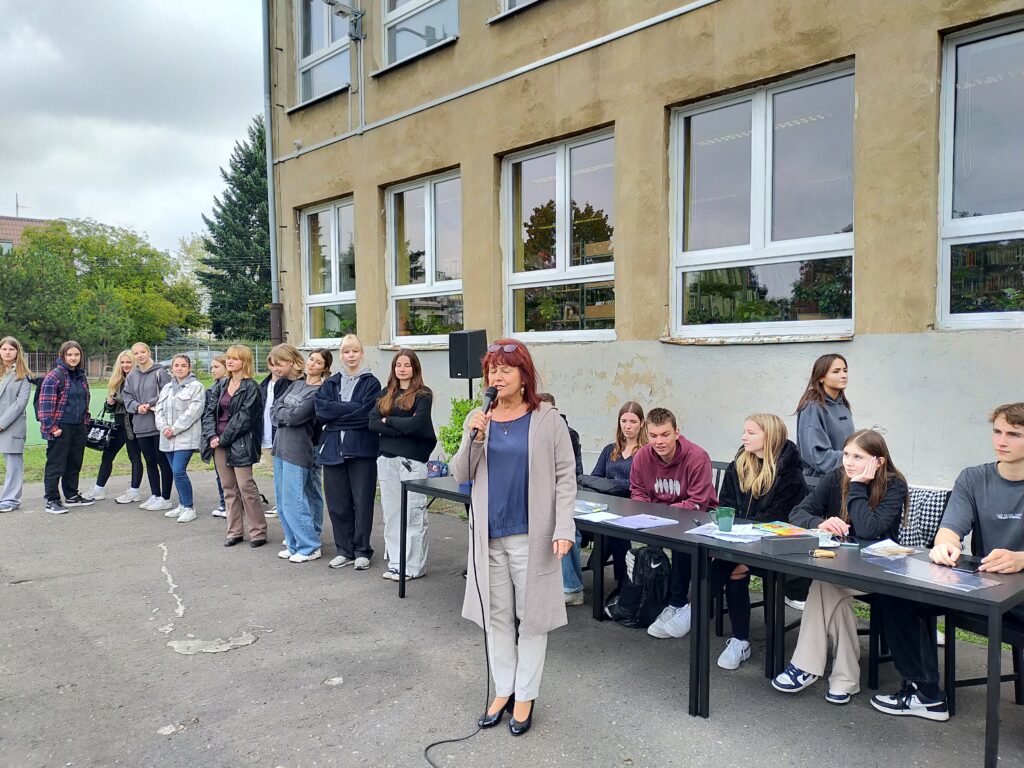 W piątek, 6 października 2023r. odbyła się uroczystość chrztu klas pierwszych Drżyjcie Beany. Tego dnia wszystkie klasy pierwsze wraz z wychowawcami musiały wykazać się talentem tanecznym podczas występu do wylosowanego utworu muzycznego. Uczniom i nauczycielom nie brakowało odwagi i kreatywności, co wzbudziło ogólny zachwyt jury i wszystkich zgromadzonych. Poza tym uczniowie klas pierwszych zmierzyli się w zadaniach sportowych, logicznych, nie zabrakło quizów muzycznych, z wiedzy ogólnej czy wiedzy o szkole. Wychowawcy mieli za zadanie wymienić imiona swoich wychowanków, z którego to zadania wywiązali się bardzo dobrze. Nie zabrakło również słodkości – każda klasa przygotowała ciasto, które wskazać mało profil klasy.