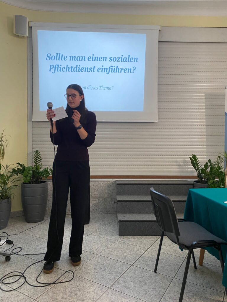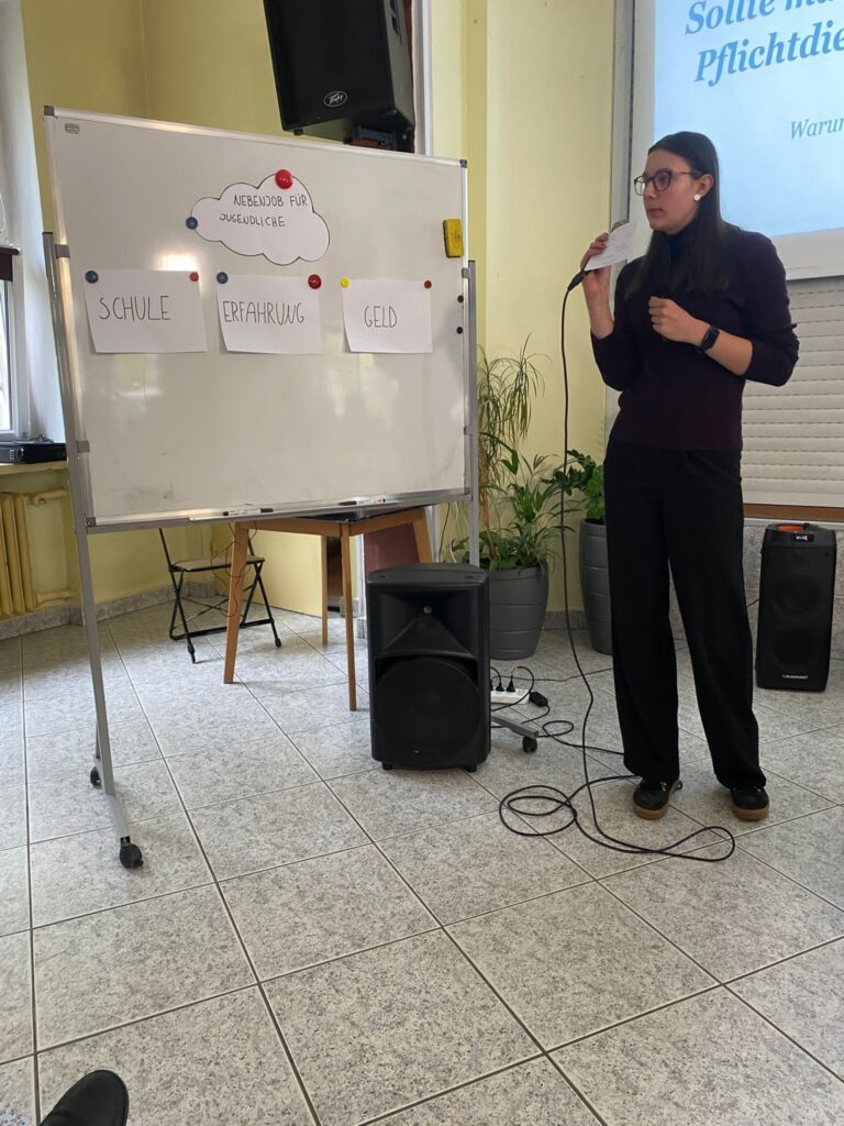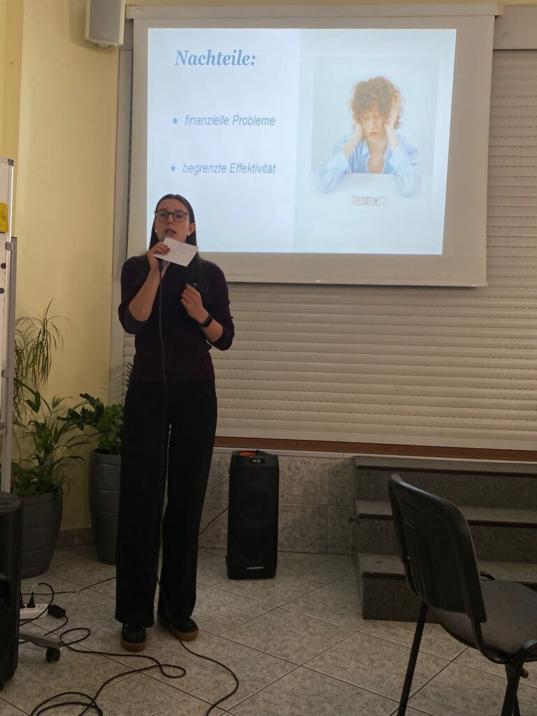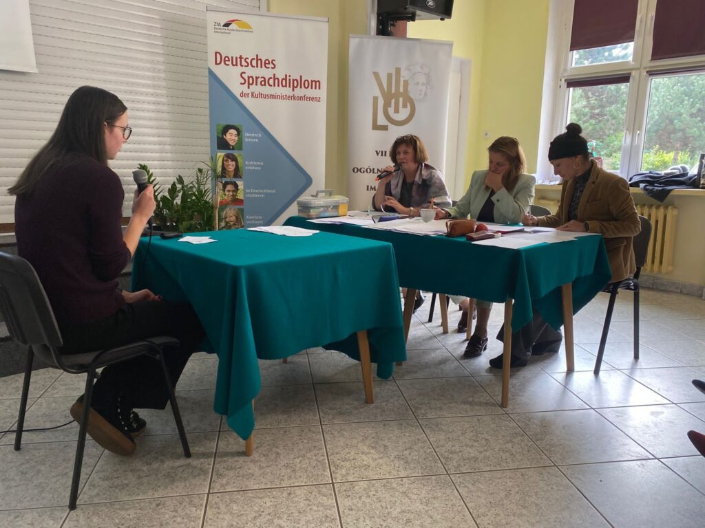 Naszą szkołę reprezentowała Michalina Wierzbicka-Bodus z klasy 3f, która omówiła temat „Nebenjob für Jugendliche” w ramach pierwszej części egzaminu oraz przygotowała prezentację na temat: „Sollte man einen sozialen Pflichtdienst einführen?”. Wprawdzie do właściwego egzaminu pozostał jej jeszcze rok czasu, ale już teraz Michalina miała możliwość doświadczyć atmosfery egzaminacyjnej oraz sprawdzić swoje umiejętności językowe.