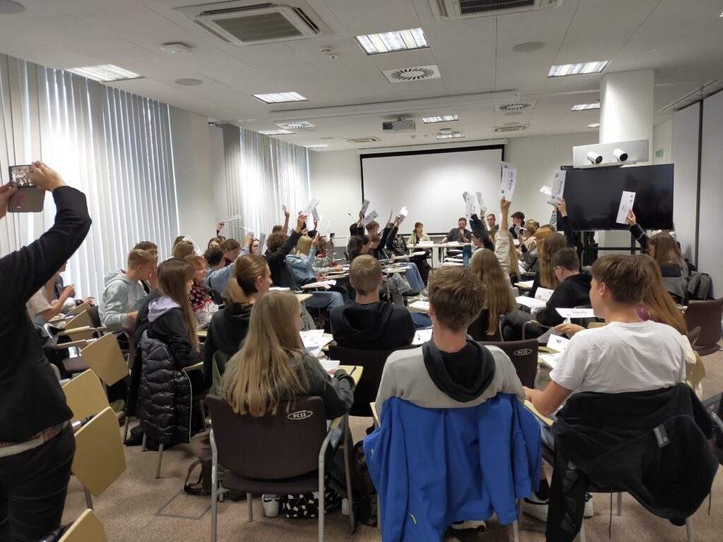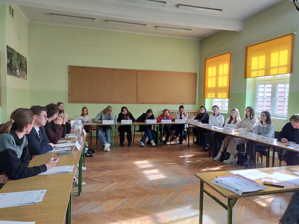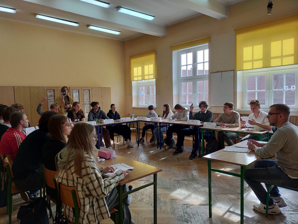 W dniach 9.10.23 – 13.10.23 odbyła się w Poznaniu druga część projektu Pimp Your Twin Town, którego organizatorem była fundacja z Hanoweru Politik zum Anfassen. W projekcie brali uczniowie IX LO, VII LO, ZSŁ oraz nasi goście z Hanoweru – uczniowie Goetheschule. Od wtorku do czwartku wszyscy uczestnicy intensywnie pracowali w komisjach, które przygotowywały wnioski z zakresu polityki komunalnej miasta w celu poprawienia komfortu życia młodych ludzi. W środę w SP 40 odbyło się spotkanie z przewodniczącym Rady Miasta Poznania p. Grzegorzem Ganowiczem, który przybliżył uczniom pracę radnego. Podsumowaniem intensywnych prac w komisjach było posiedzenie, podczas którego przedstawiano wnioski, uzasadniano je a następnie poddano głosowaniu. Młodzież miała niepowtarzalną okazję poczuć się jak młodzi politycy, zdobyć doświadczenie bycia politykiem i kształtować swoje umiejętności debaty. Poza pracami nad projektem nie zabrakło czasu na wspólne zajęcia, jak np. wizyta w Muzeum Rogala. Projekt dał nam wszystkim dużo zadowolenia, nowych doświadczeń i niezapomnianych przeżyć. Z naszego liceum udział wzięli uczniowie z klasy 3d z grupy niemieckiej wraz z p. prof. Katarzyną Grabowską.