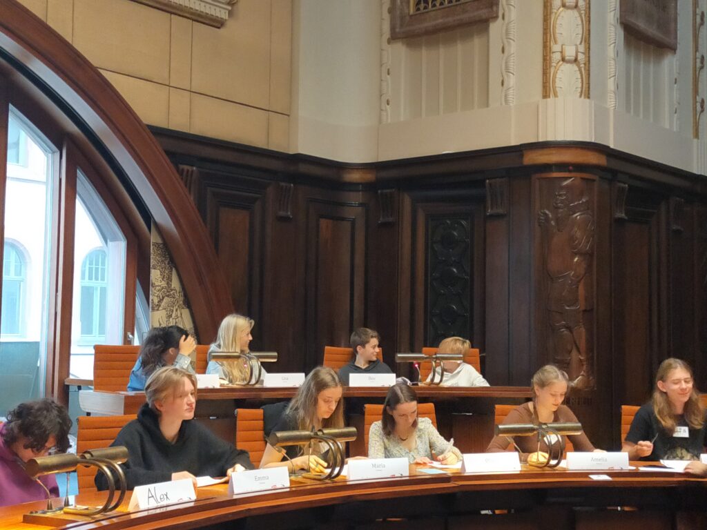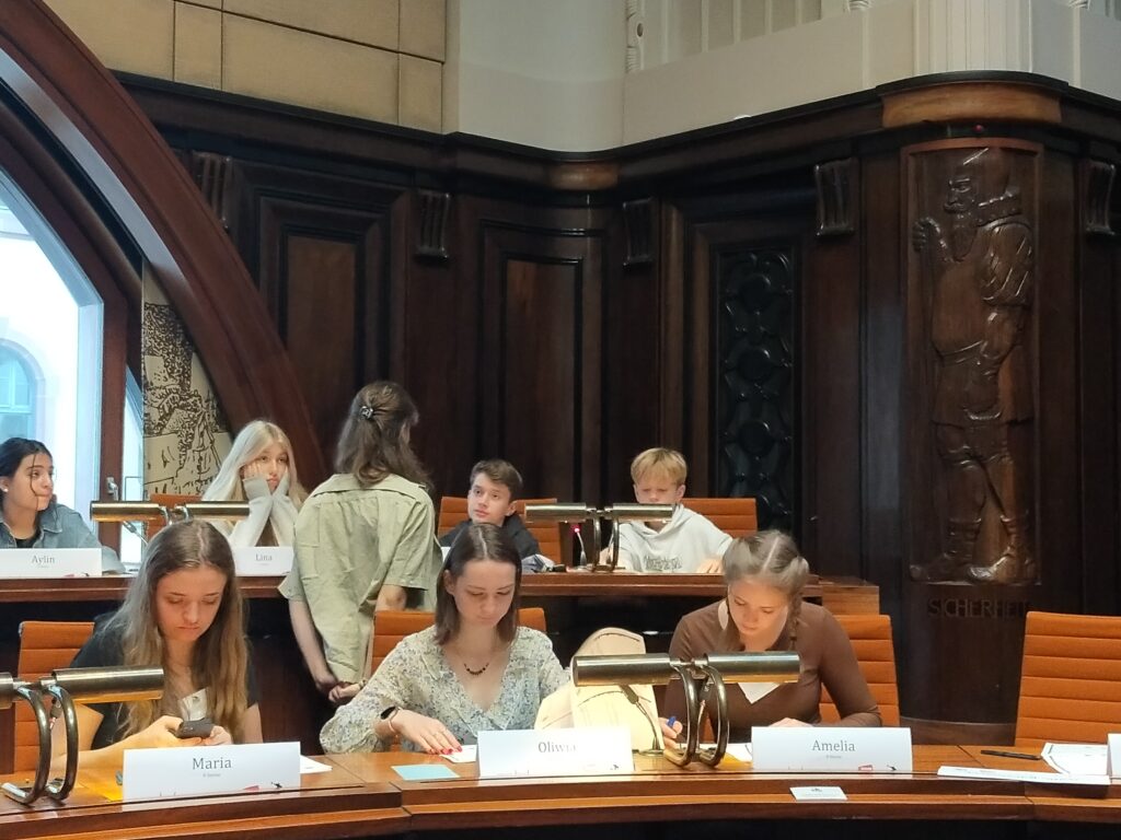 Od 27.09.2023 do 30.09.2023r. 10 uczennic i uczniów z klasy 3d przebywało pod opieką pani prof. Katarzyny Grabowskiej w Hanowerze na zaproszenie fundacji Politik zum Anfassen. Razem z przedstawicielami 7 LO, ZSŁ oraz z młodzieżą z gimnazjum Goetheschule Hannover nasi uczniowie brali udział w projekcie Pimp Your Twin Town. Wszyscy uczestnicy mieli okazję wcielić się w rolę młodych polityków, którzy zajmowali się problematyką komunalną i mieli okazję spróbować swoimi pomysłami zmienić najbliższe otoczenie. Intensywne prace w komisjach zakończone zostały obradami w sali plenarnej w Nowym Ratuszu, podczas których kierując się zasadami demokracji, przedstawiano zgłaszane wnioski a następnie głosowano nad ich przyjęciem.