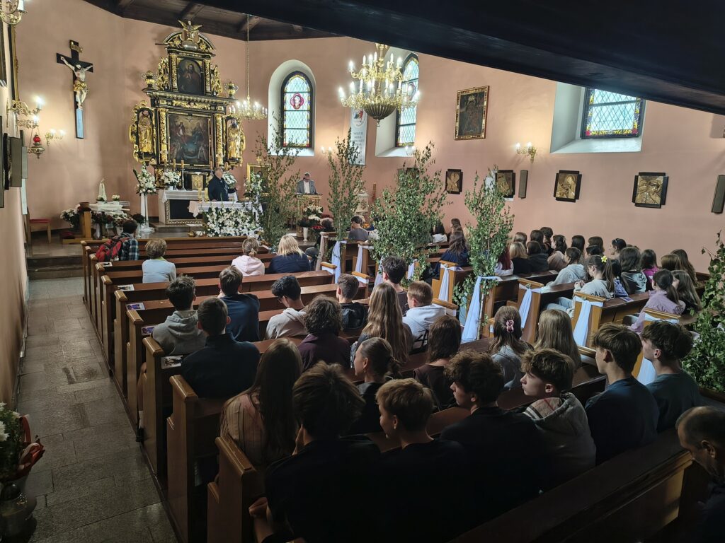 Młodzież przed odjazdem złożyła hołd swemu patronowi symboliczny wieniec na ołtarzu świątyni w Czeszewie – w pobliżu miejsca spoczynku Karola Libelta w krypcie grobowej.